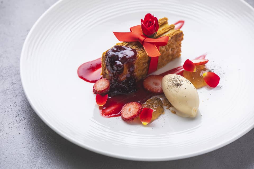 出身地の苺をつかったミルフィーユ